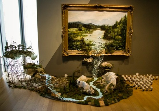 L’artiste péruvienne Ana Teresa Barboza recrée des paysages terrestres et marins qui sont à la fois broderie et sculpture. Ses oeuvres offrent un effet de